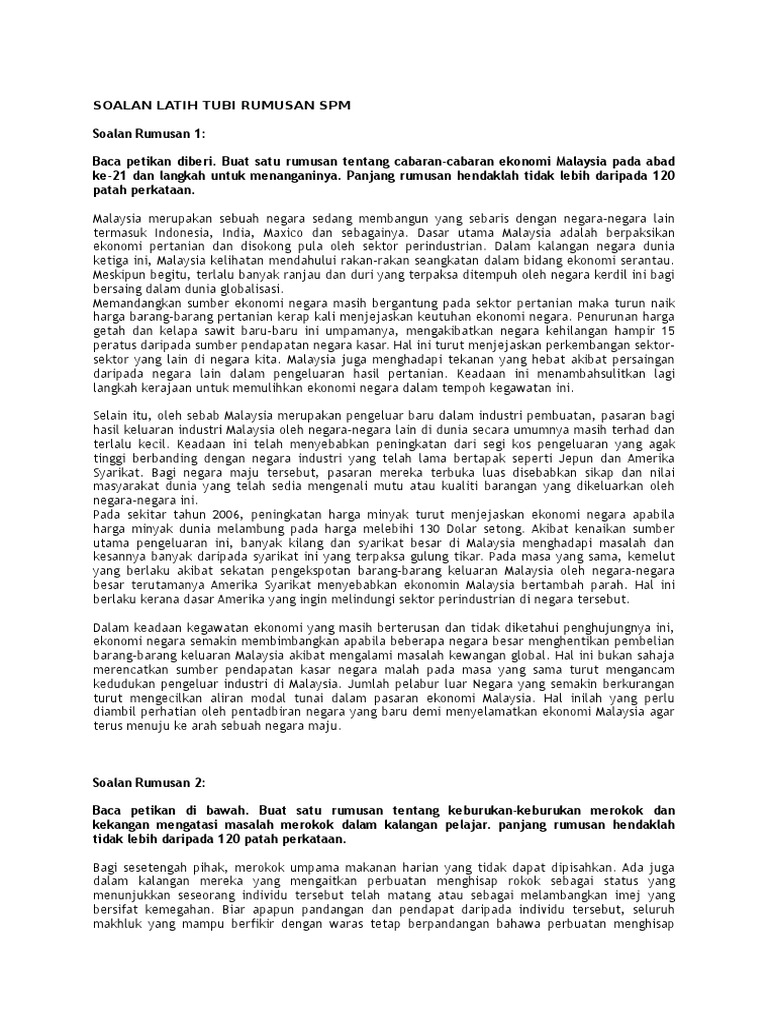 Latihan rumusan 1 format spm 2021 baca petikan di bawah dengan teliti, kemudian buat satu rumusan.