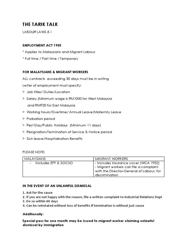 In summary, malaysian labor laws are clear but always under review. The fair labor standards act (flsa) has no requirements that a company must give notice to an employee prior to termination or. Ms loh sub mui, a hr generalist with 20+ years experience, spoke on the 10. 11 see lammy betten, international labour law: Part 2, division 8 of the employment standards code provides the process required to terminate.